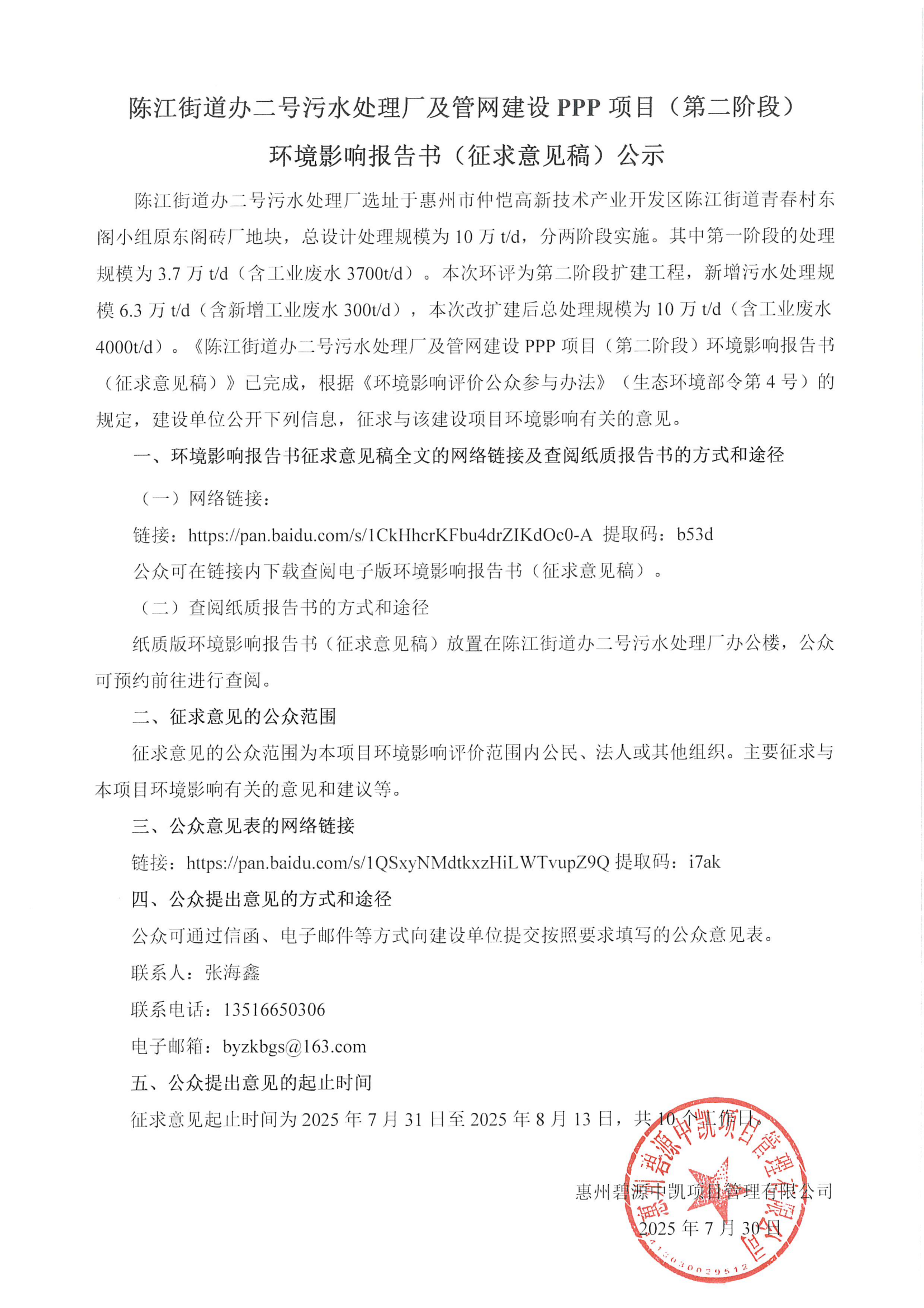 陳江街道辦二號污水處理廠及管網(wǎng)建設PPP項目(第二階段) 環(huán)境影響報告書(征求意見稿)公示