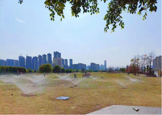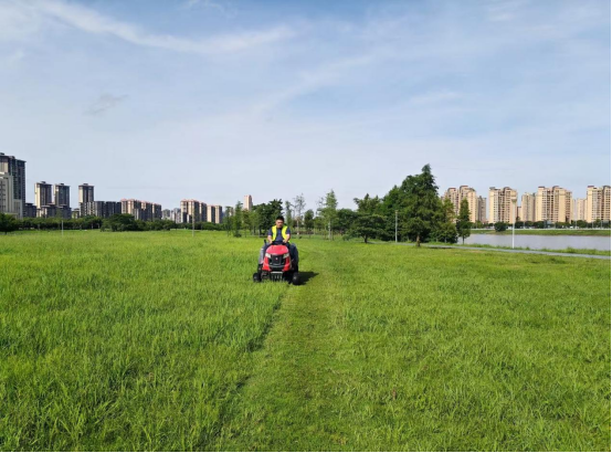 在高效推進(jìn)綠化管護(hù)的同時(shí),管護(hù)項(xiàng)目持續(xù)優(yōu)化人機(jī)配合作業(yè)。一方面,機(jī)械打草替代傳統(tǒng)人工作業(yè),每日減少4人次投入,作業(yè)效率提升近30%;另一方面,配合智能噴淋系統(tǒng),精準(zhǔn)灌溉抑塵,避免積水爛根,同時(shí)控制濕度、杜絕蚊蟲孳生溫床,實(shí)現(xiàn)護(hù)綠與防蚊“一舉兩得”。